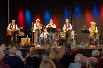 Die acht Musiker mit neun Instrumenten lieben Instrumental-Soli und bringen Power und Schwung von Beginn an rüber. Mit ihrer Mischung aus Dixieland, Swing, Rock und Pop sind die King Street Jazzmen ein wahrer Publikumsmagnet.